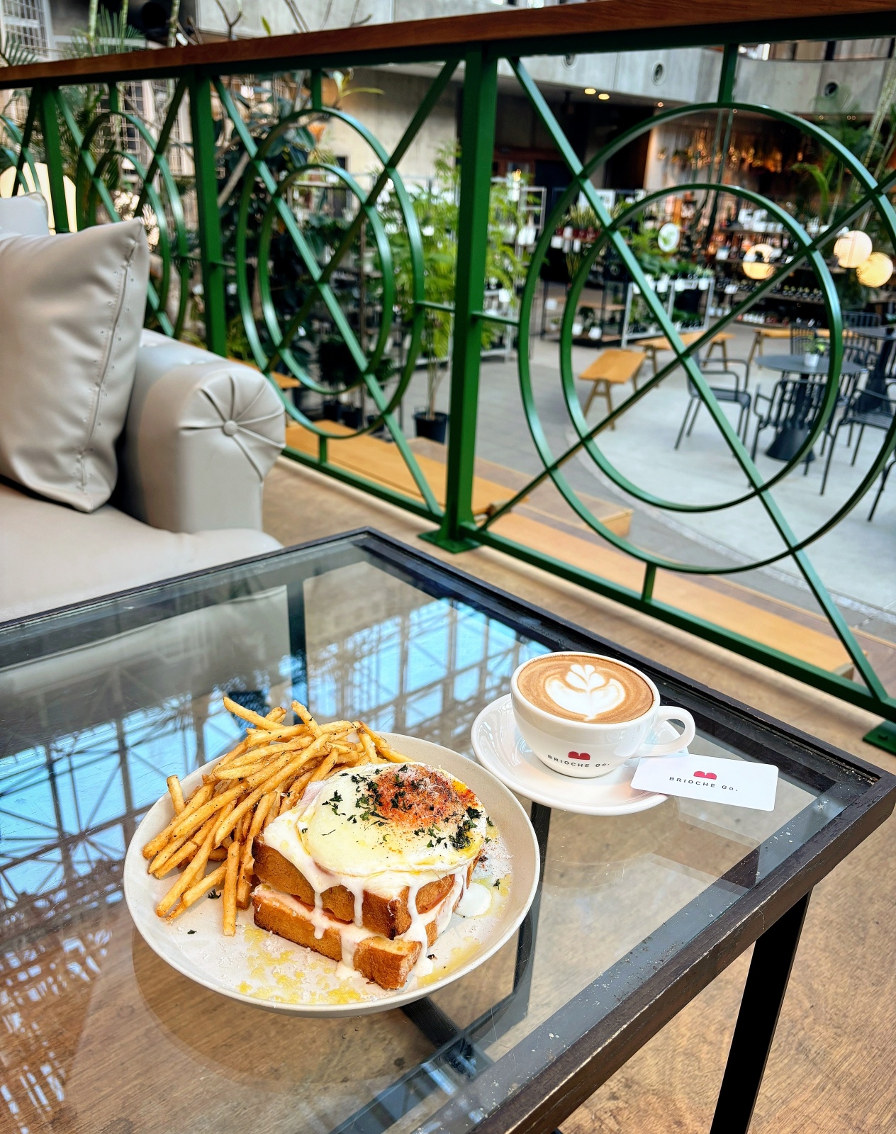 カフェの隣の植物を販売している温室?でもイートイン出来る場所があって、そこのソファ席が大人気で4つとも10時30分頃には埋まってた。